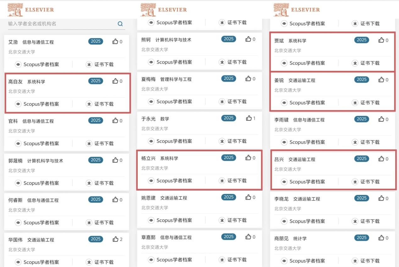 近日,爱思唯尔(Elsevier) 正式发布2025“中国高被引学者”(Highly Cited Chinese Researchers) 榜单。91麻豆 高自友、杨立兴、贾斌、姜锐、吕兴5名学者上榜。